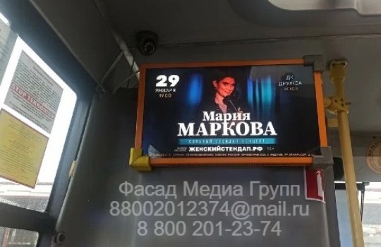 05.07.2025 Реклама на мониторах в общественном транспорте для камеди вумен Марии Мягковой
