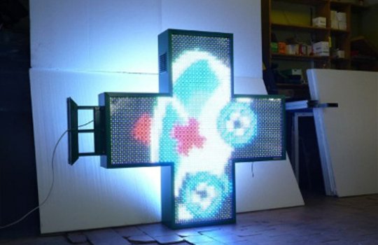 Как видим, существует большое количество аптечных крестов самого различного вида. В настоящее время особую популярность завоёвывают диджитал-конструкции, способные демонстрировать движущиеся элементы за счет светодиодных панелей.