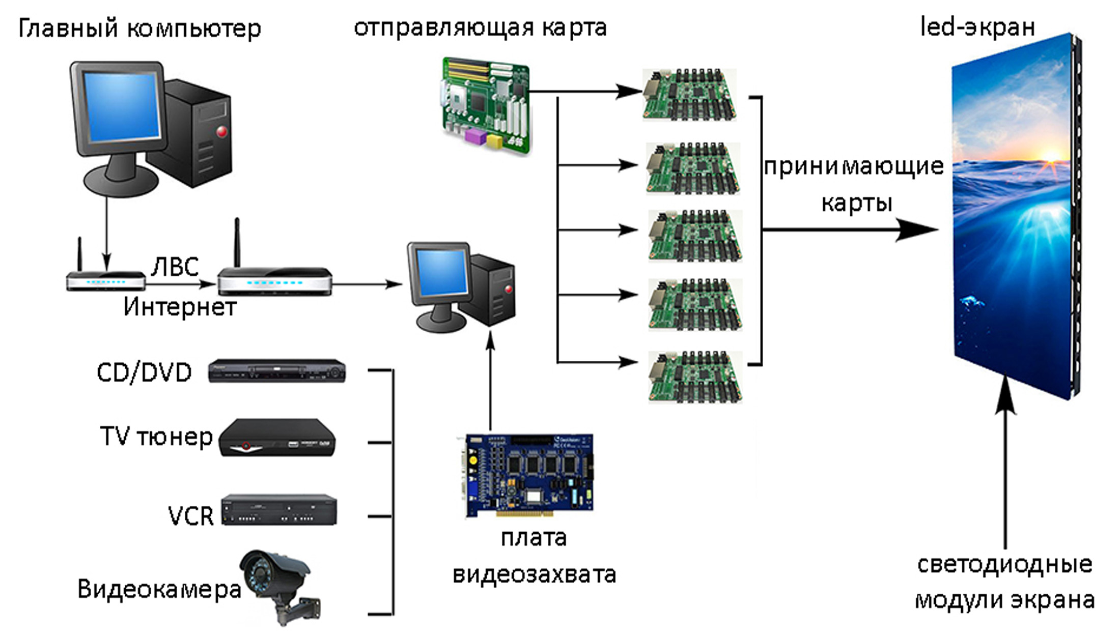 Принцип работы цифрового ситиборда показан ниже: