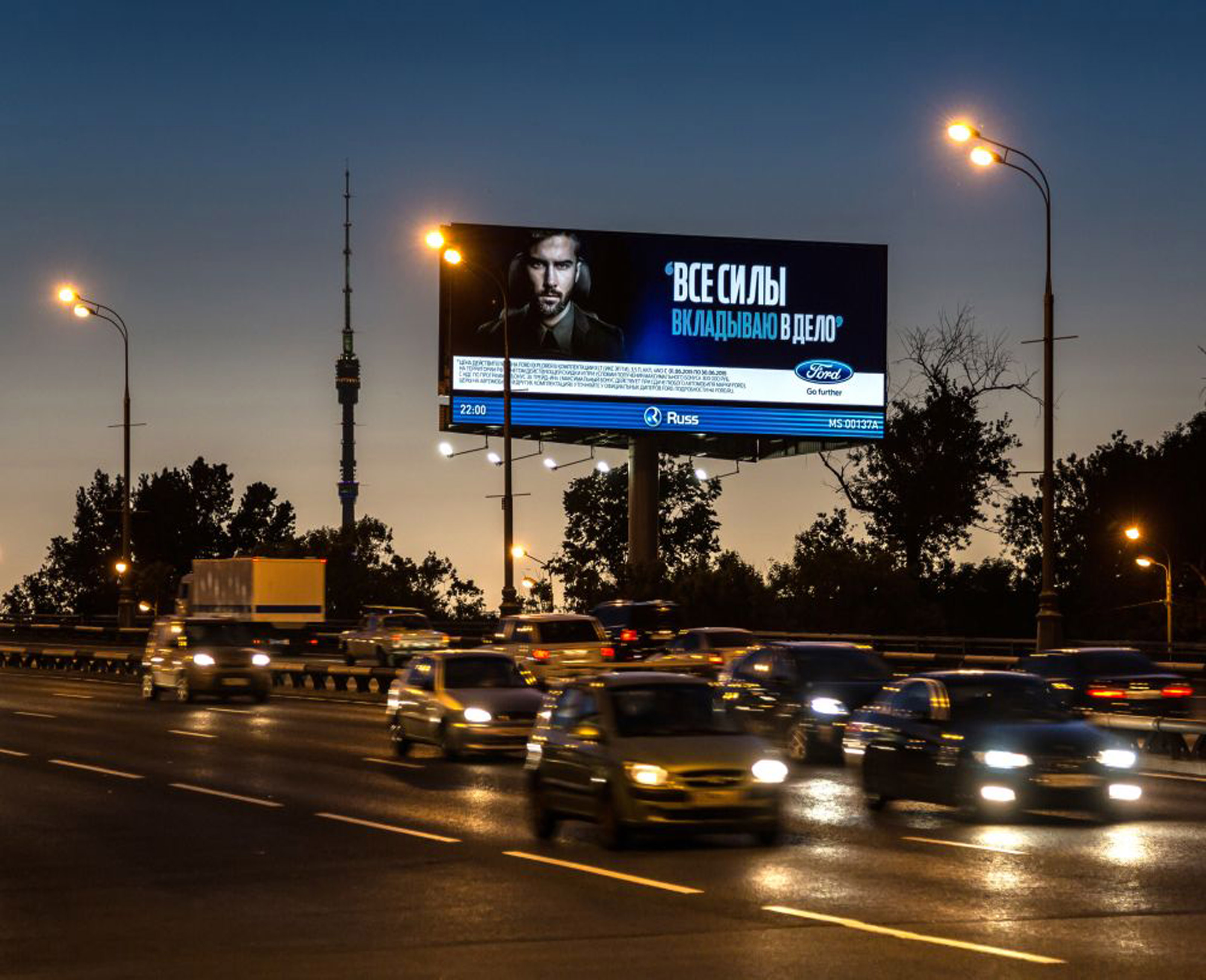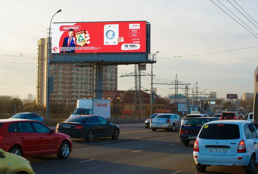 Приводим пример размещения рекламы на цифровом суперборде в дневное время: