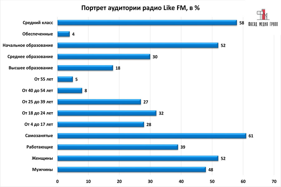 На вопрос: «Какова целевая аудитория радио «Лайк ФМ»? - можно указать следующее: