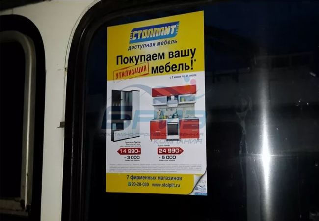 Сколько стоит размещение стикеров в салоне автобуса в Боровичах?