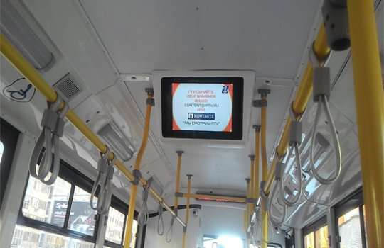 Реклама на мониторах в междугороднем автобусе на фото выше