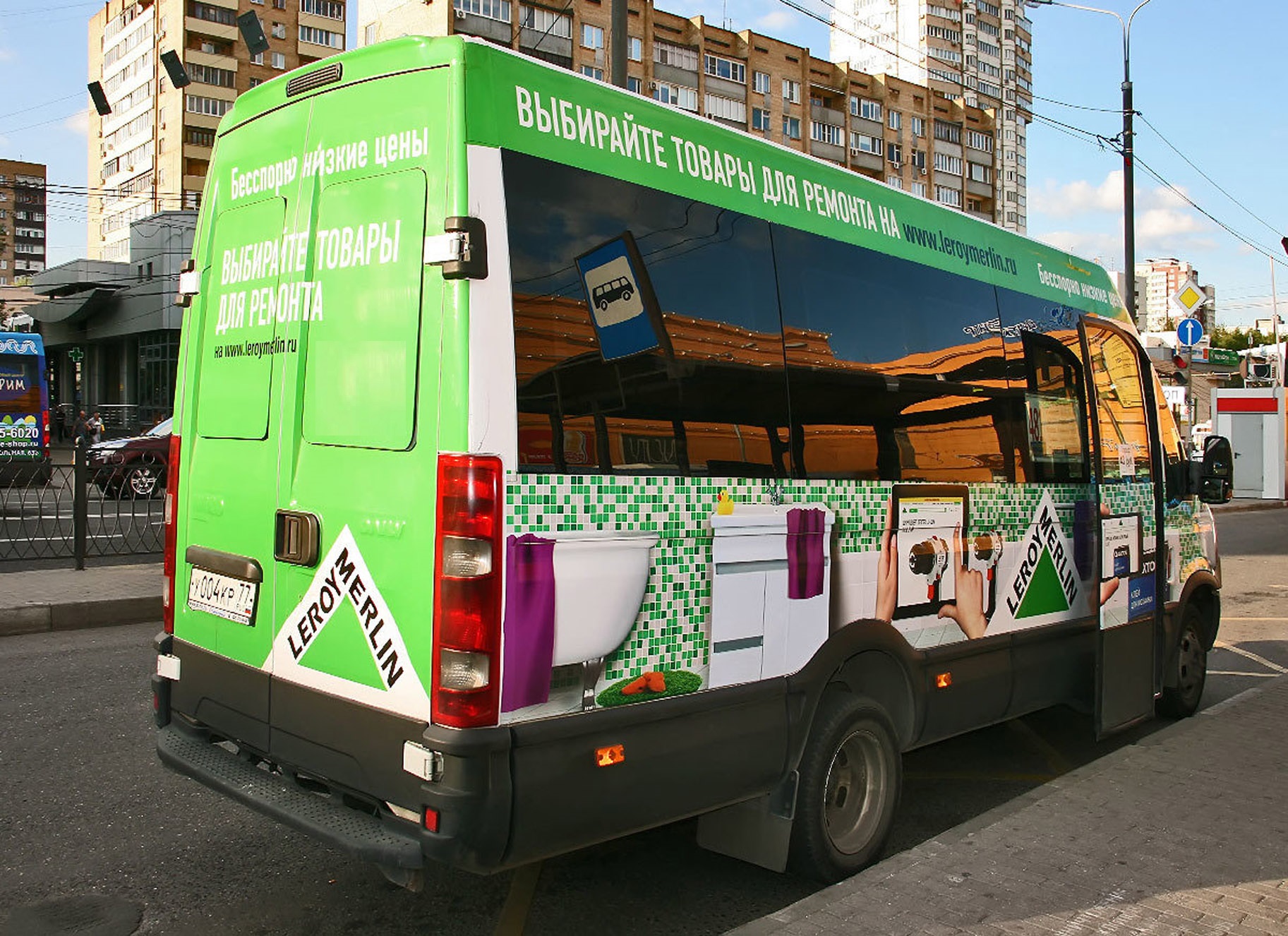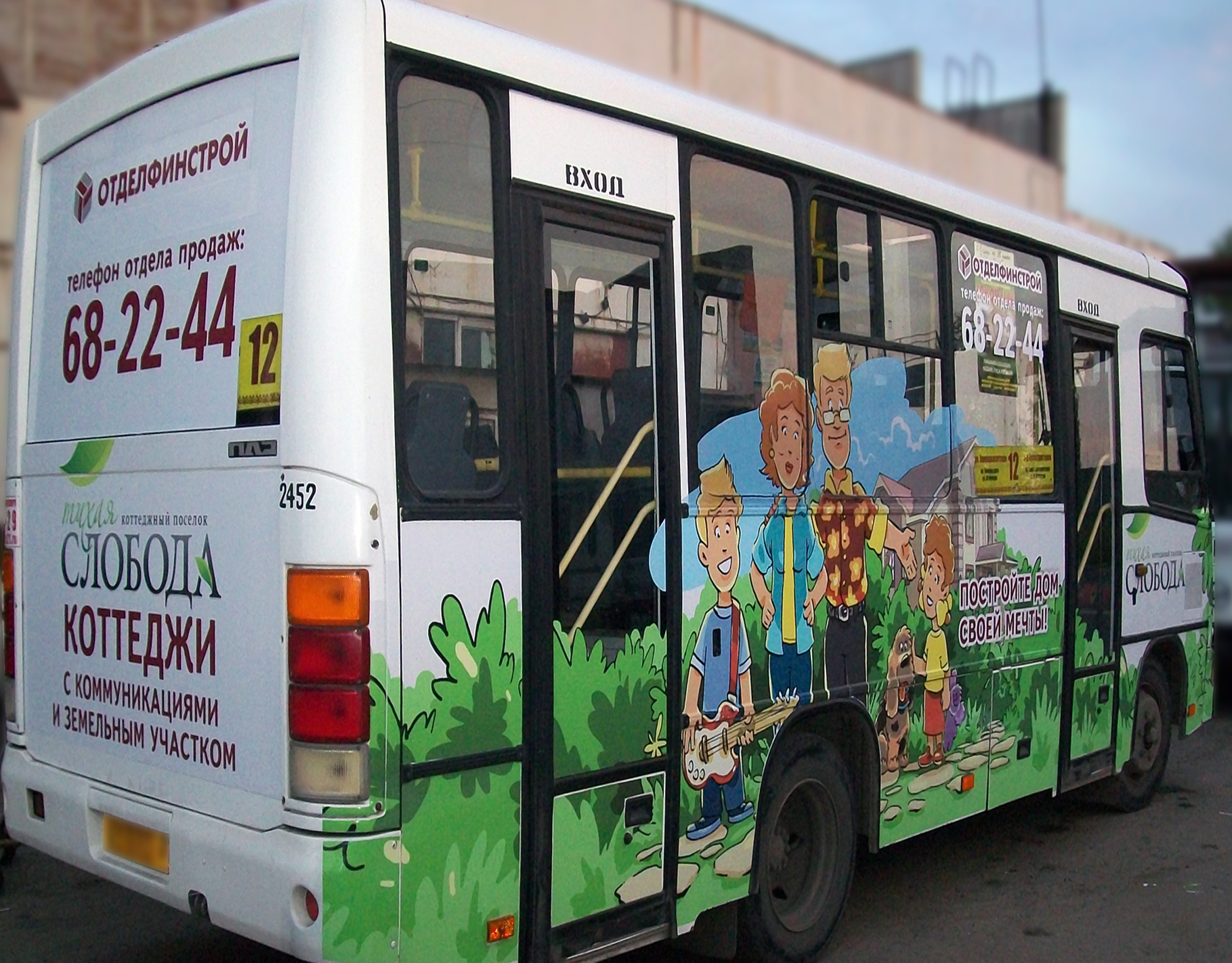 3) процесс брендирования (оклейки) автобуса рекламой: