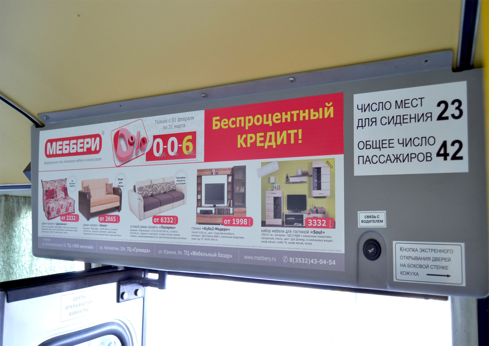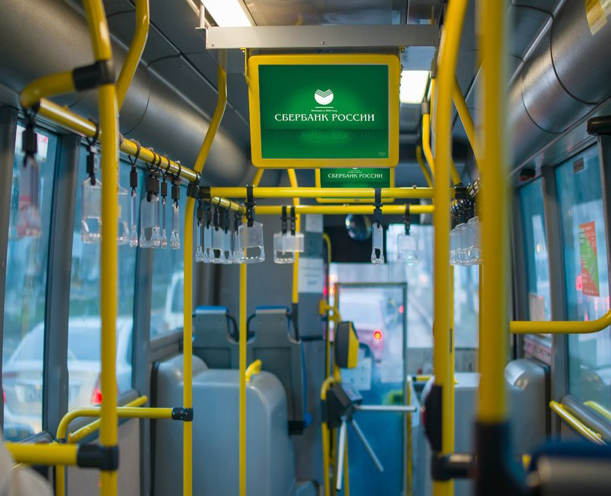 Рекламные стикеры в междугороднем автобусе на фото выше