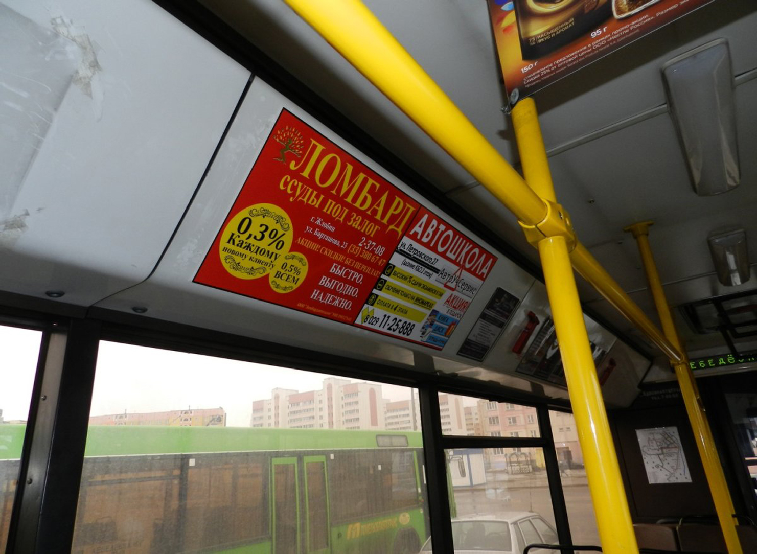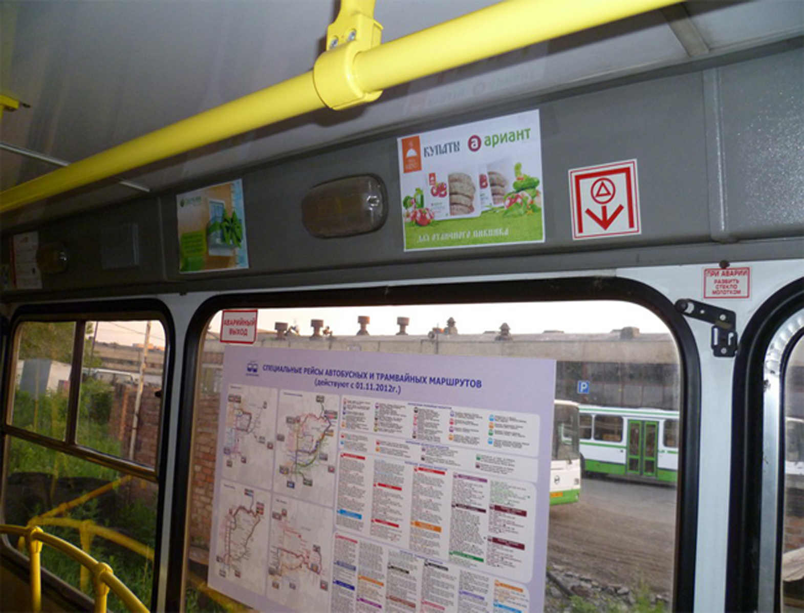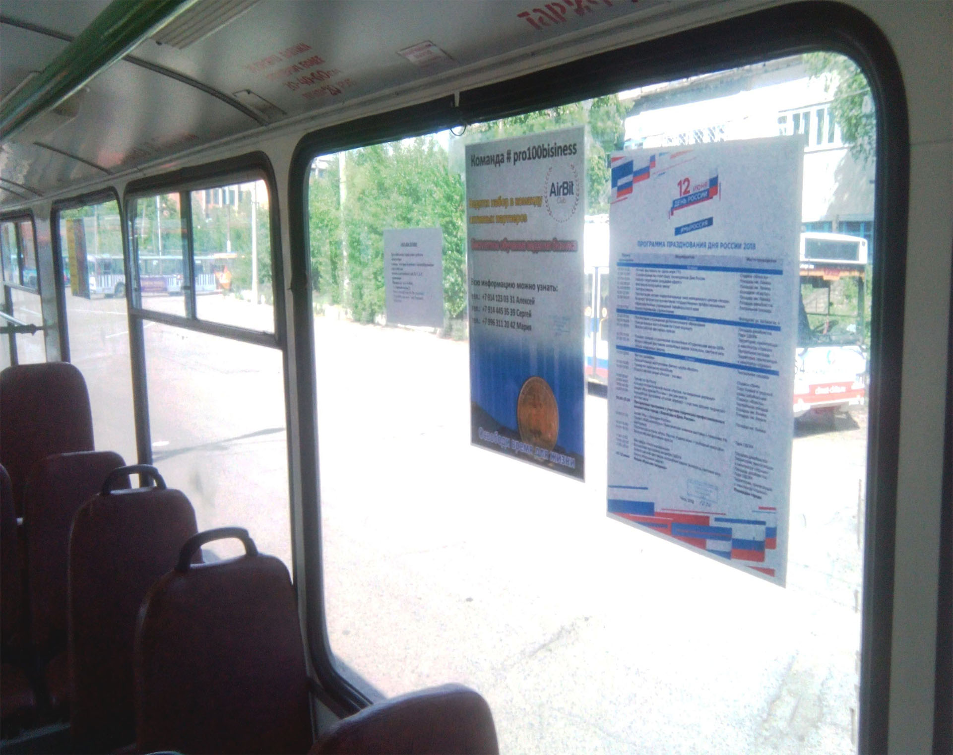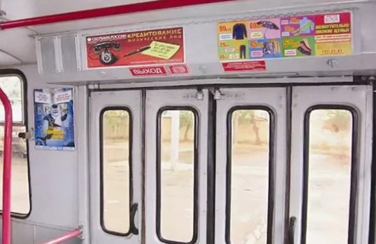 Рекламные стикеры в троллейбусе на фото выше