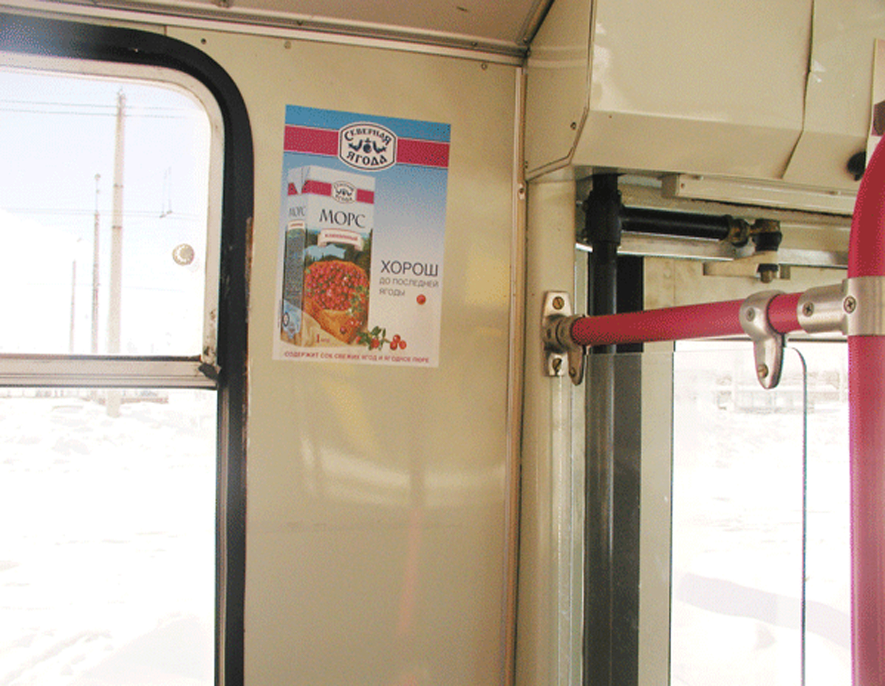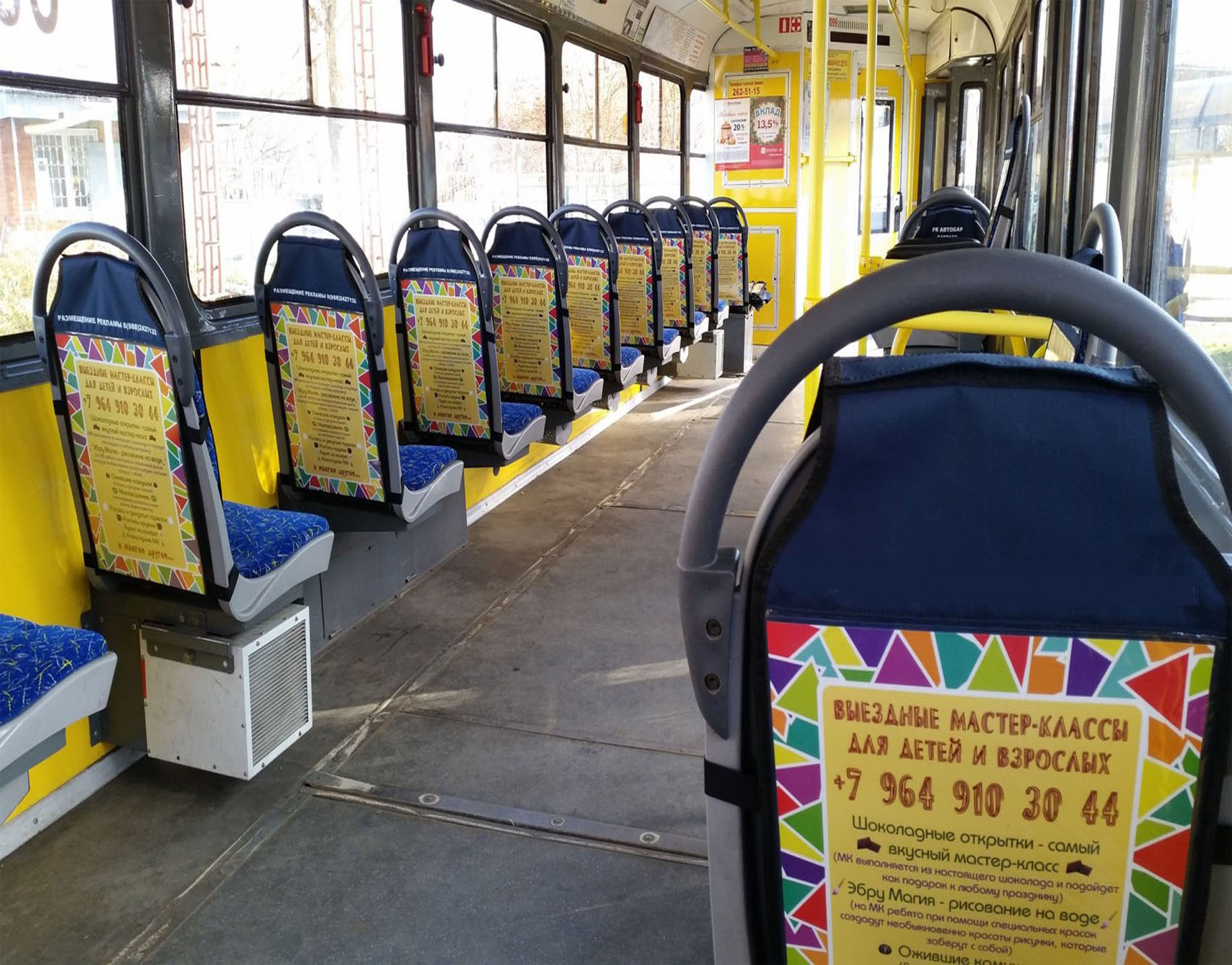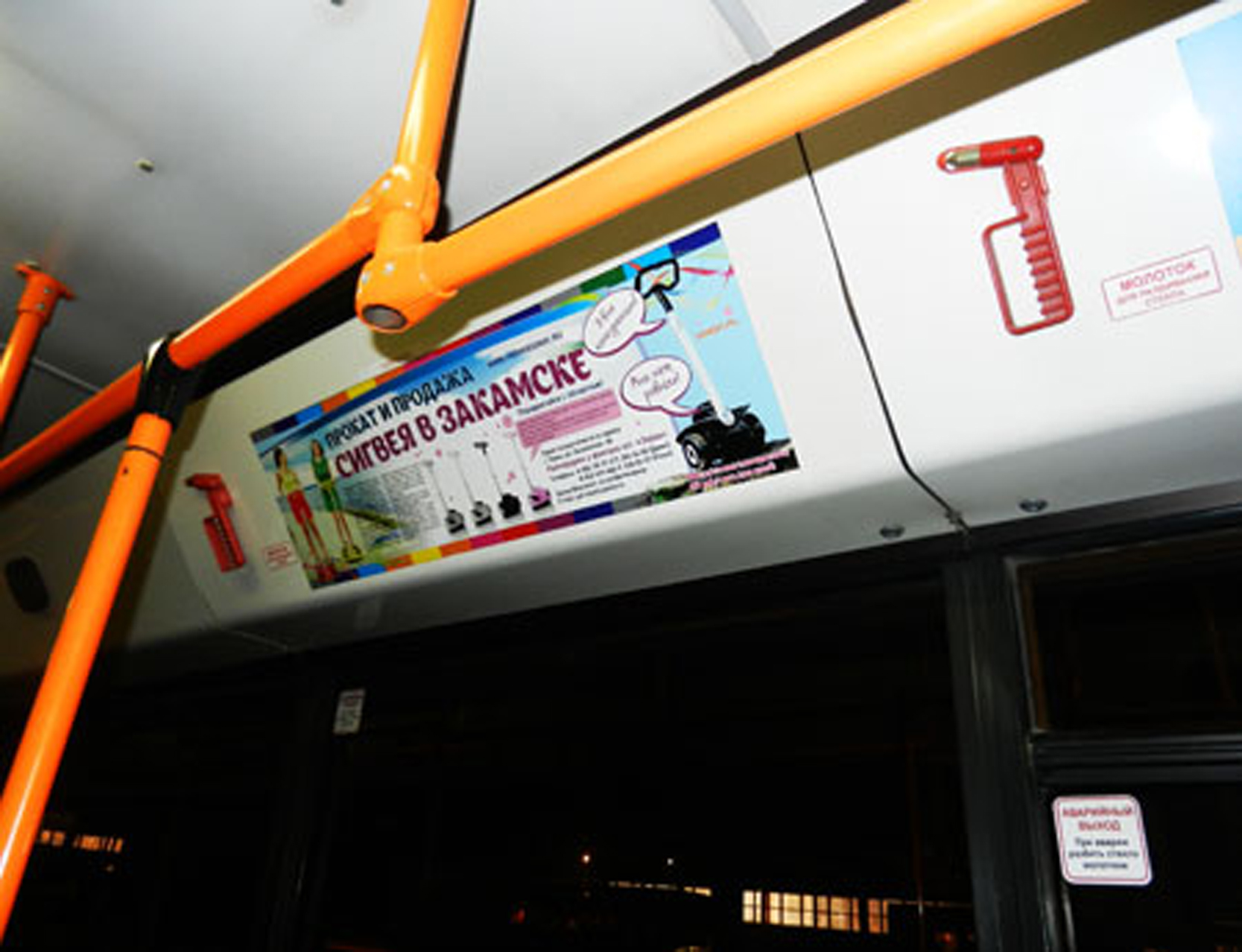 Рекламные стикеры в троллейбусе на фото выше