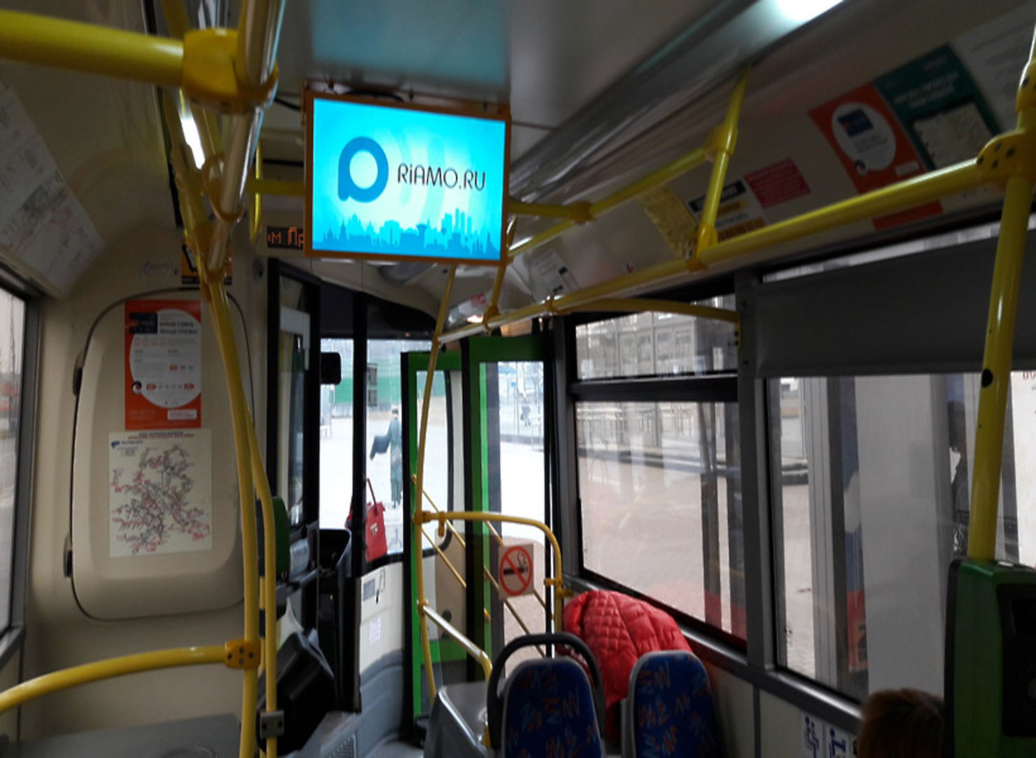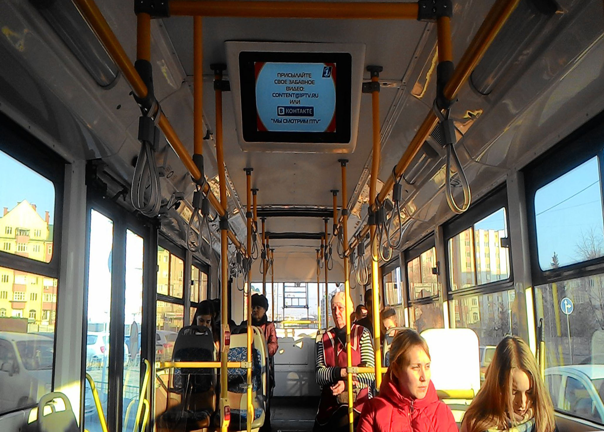 Реклама на мониторах в троллейбусе на фото выше