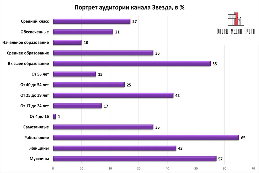 Графически аудиторию телеканала «ЗВЕЗДА» можно представить в следующем виде: