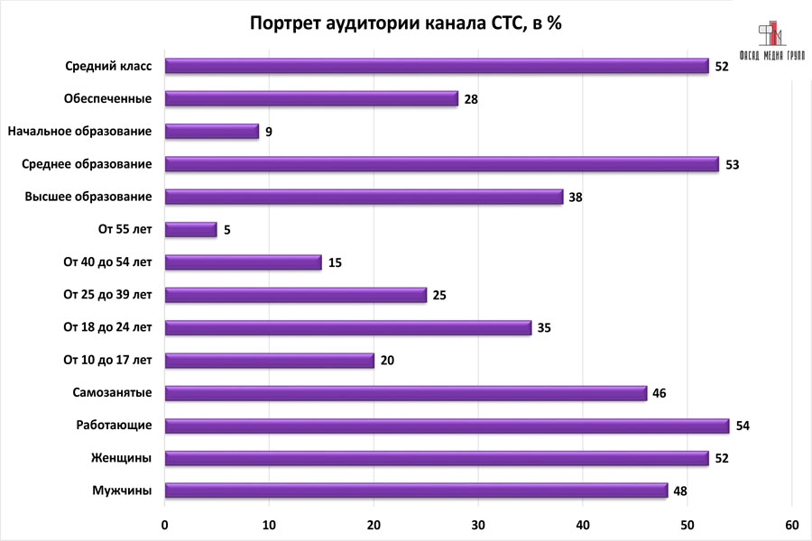 Благодаря качественному, сбалансированному контенту аудитория «СТС» многочисленна и разнообразна.