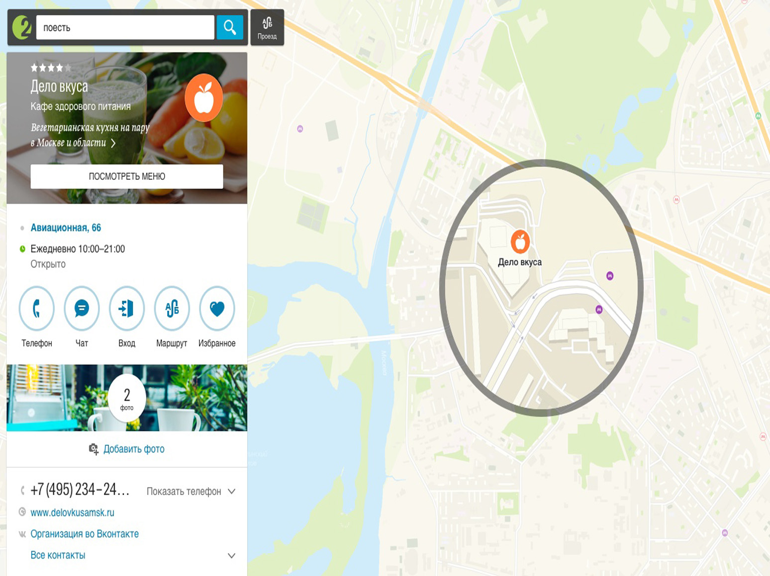 Пример баннер в поисковой выдаче (онлайн-версия) 2ГИС (Двагис, ДубльГис) представлен на фото: