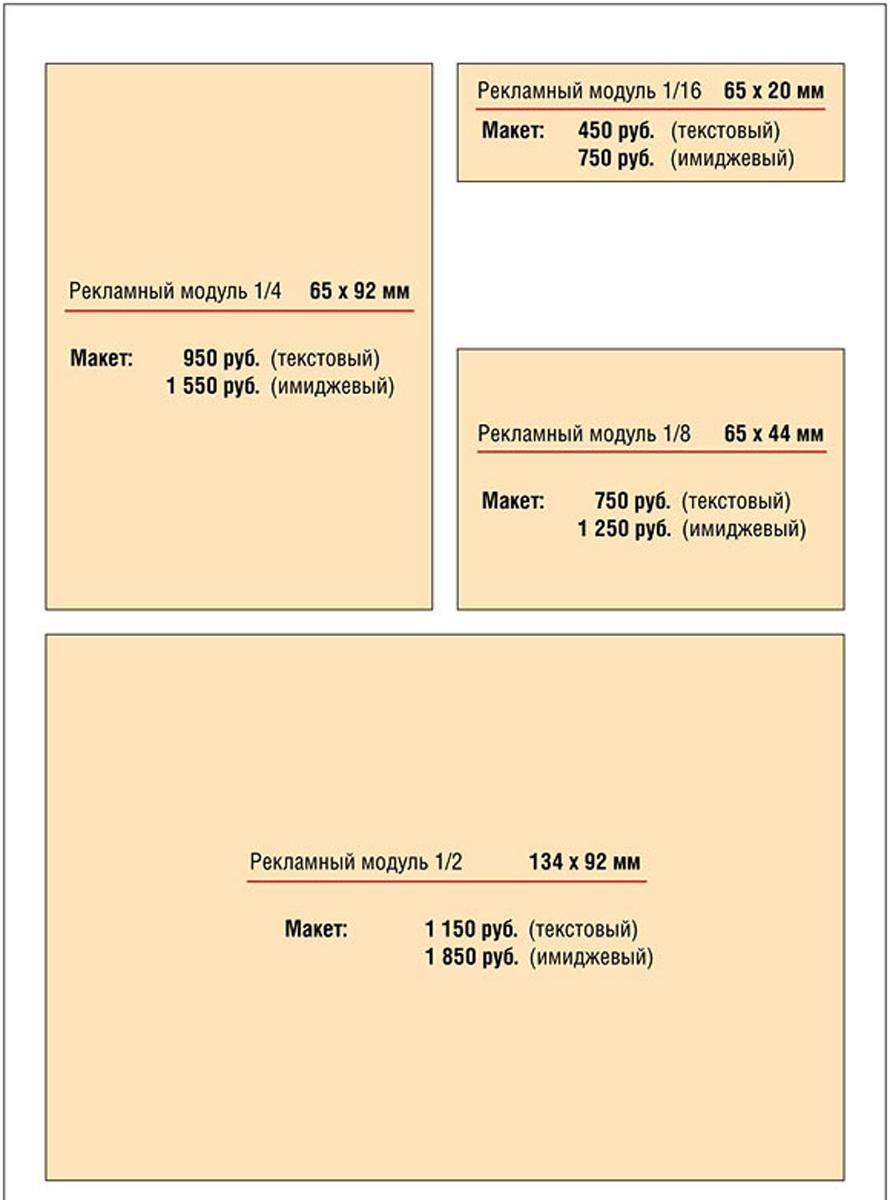 Каковы размеры модулей для рекламы в журналах (печатных-СМИ)?