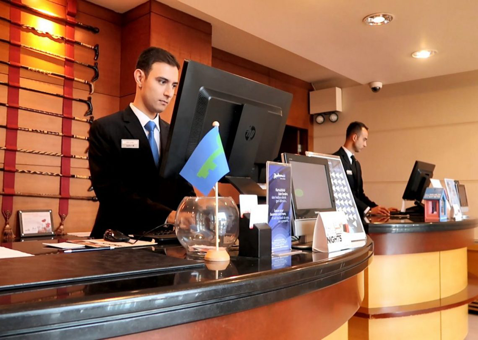 Пример брендирования входа и зоны ресепшн в гостиницах: