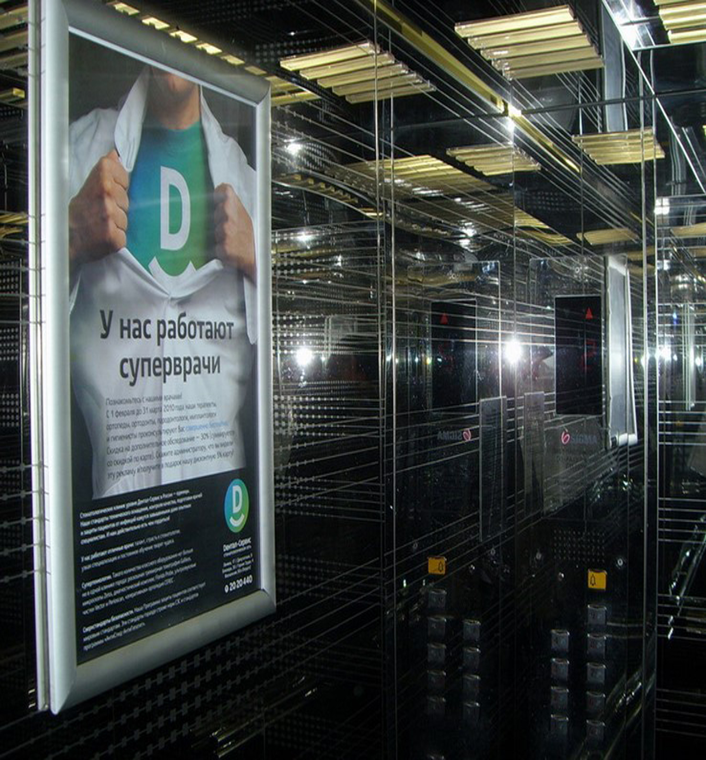Высокая частота контактов является важным составляющим успеха любой рекламной кампании. Размещая рекламу в помещениях и зданиях, рекламодатель обеспечивает массовый охват целевой аудитории и значительно повышает вероятность привлечь новых клиентов и увеличить процент продаж.