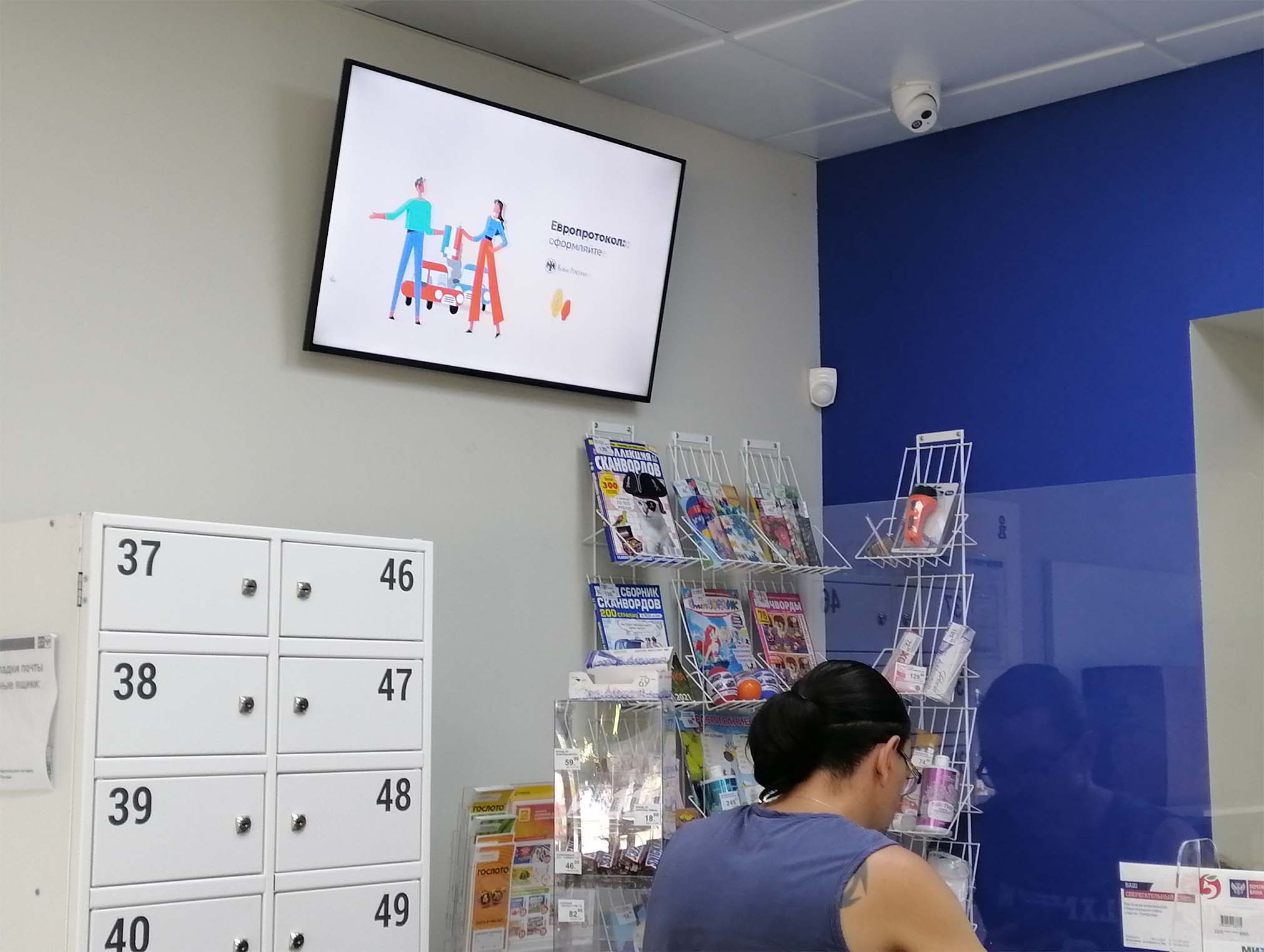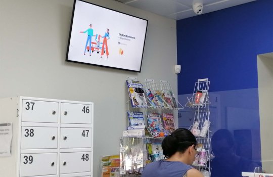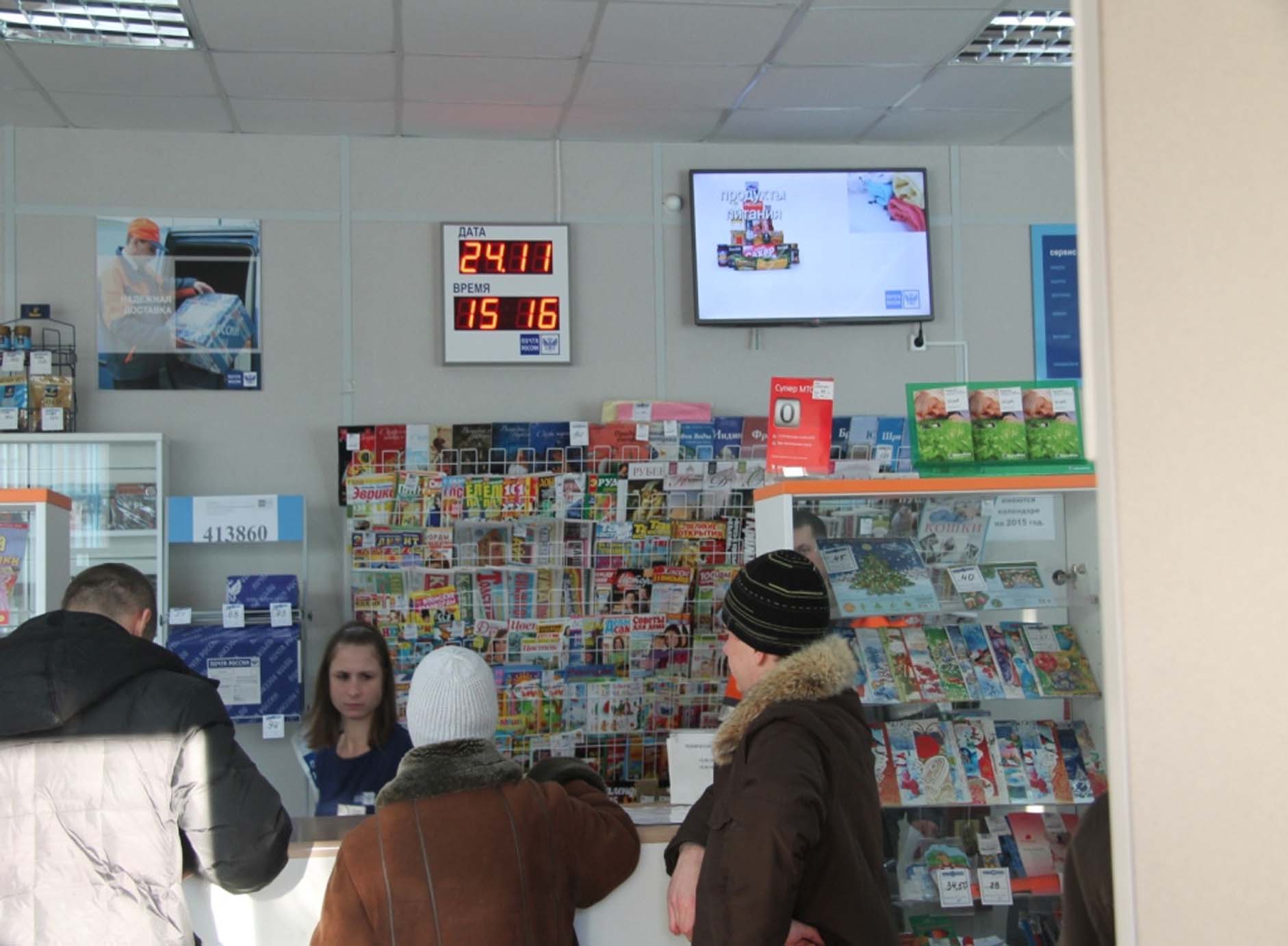 Пример рекламы на мониторе в отделении Почты России: