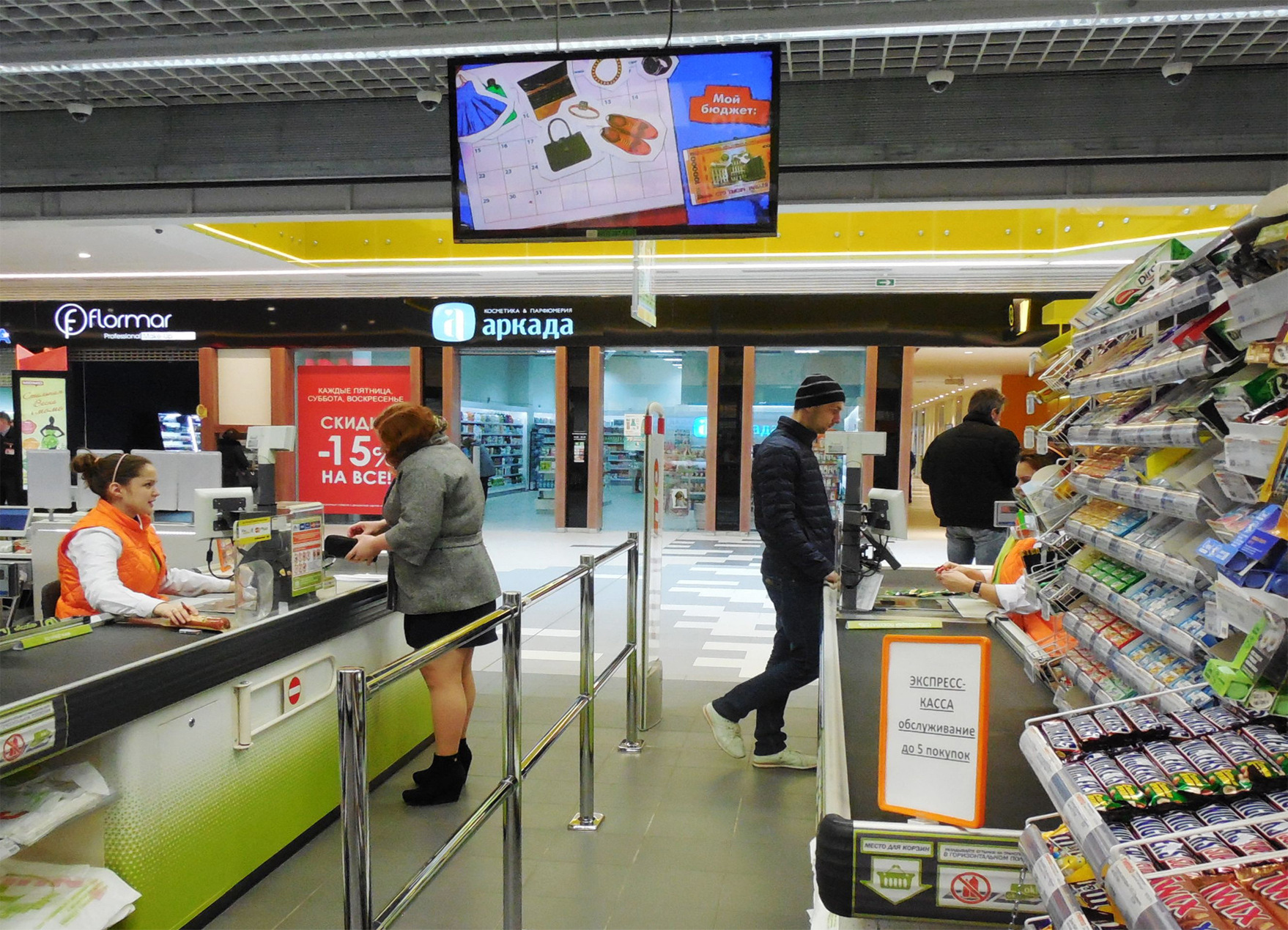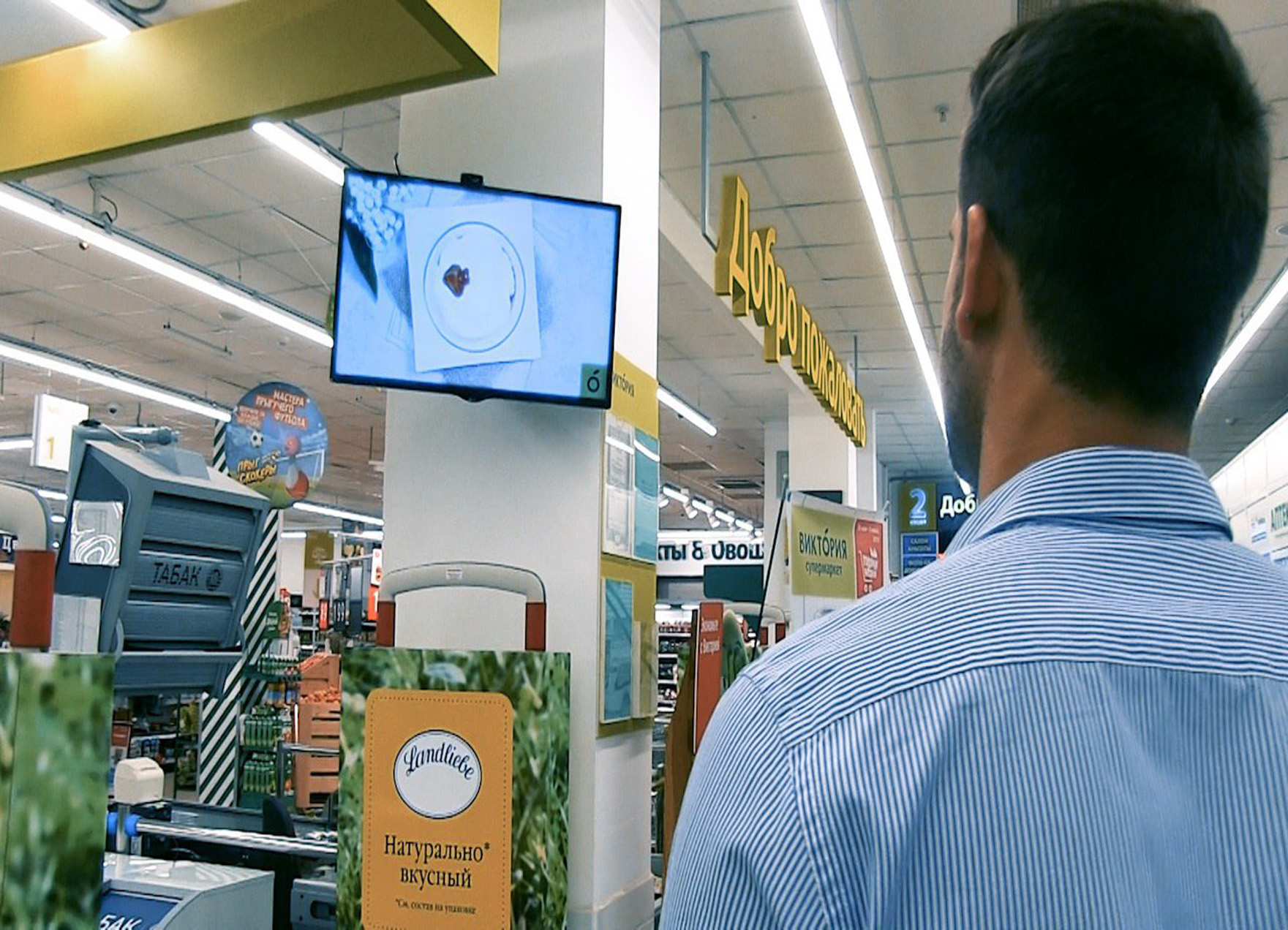 Пример рекламы на мониторе в супермаркете: