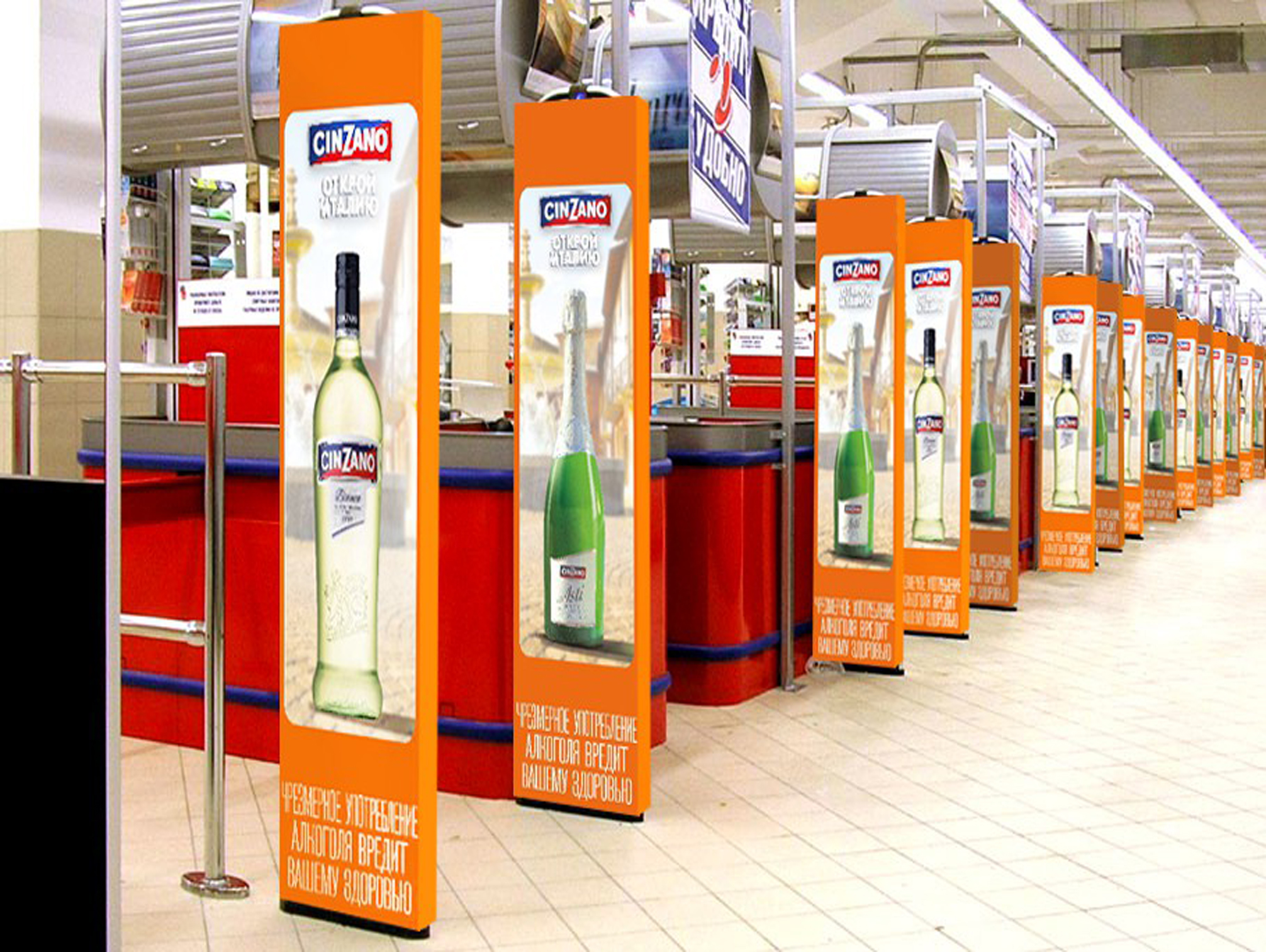 Пример рекламы на ленте в супермаркетах: