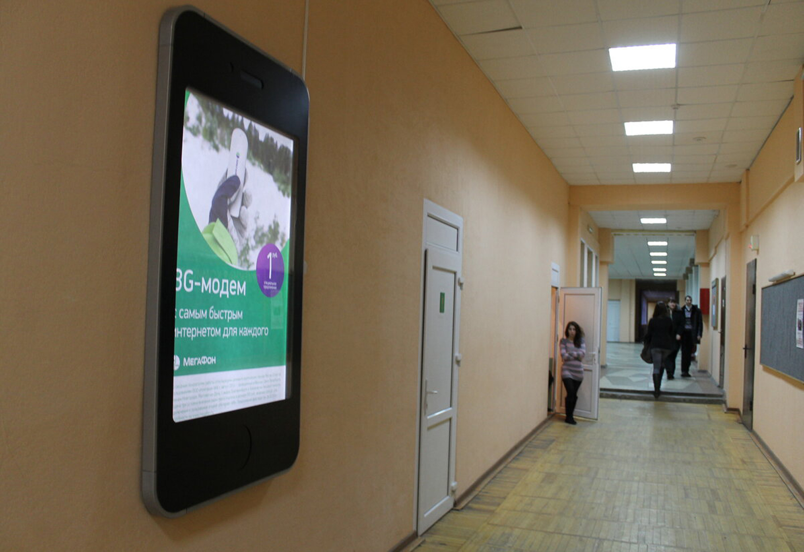 Пример рекламы на мониторе в ВУЗе: