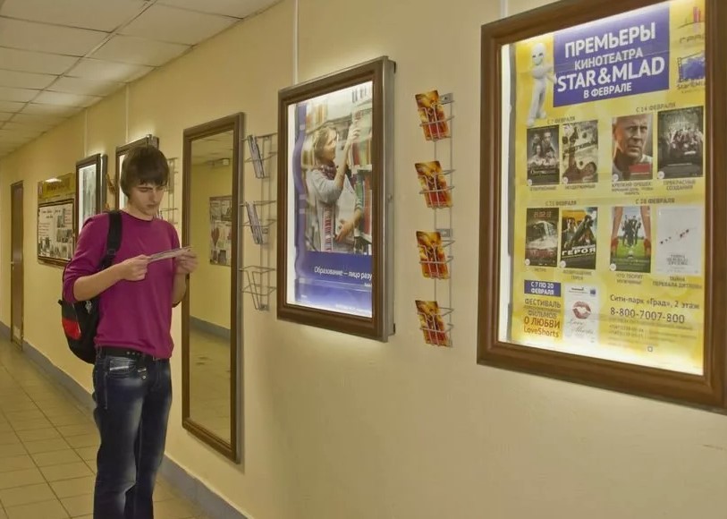 Напомним, что рекламу в ВУЗах в Боровичах можно разместить как в виде плаката, стикера, листовки, флаера, холдера, так и запустить трансляцию рекламного ролика на мониторах.